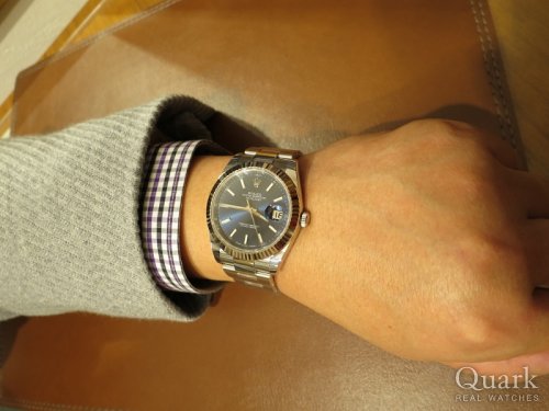 O様、この度はクォーク梅田店をご利用頂きまして誠に有難うございます。ご案内までに長らくお時間を頂戴し、申し訳ございませんでした。ご承知の通り、今回ご購入頂いたデイトジャスト41 Ref.126334ブルーダイヤルは今年の新作として発表されて以降、現在も尚流通量が少ないモデルでございます。デザインや機能面においても最新の仕様となっており、きっとご満足頂けるかと思います。今後ともO様のお役に立てるよう努めて参りますので、末永いお付き合いの程宜しくお願い致します。またのご来店を心よりお待ちしております。