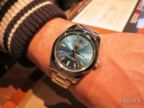 S様 いつもクォーク上野本店をご利用頂き誠にありがとうございます。今回はMILGAUSS Ref.116400GV Zブルーのご購入のお手伝いが出来た事、大変嬉しく思います。2014年にミルガウスのラインナップに加わりグリーンガラスに深いブルーダイヤルが注目を集めた事が記憶に新しいミルガウスです。最大の特徴は1000ガウスの耐磁性能を持ち初代モデルを彷彿とさせるイナズマ針となります。ご使用頂きしっかりとサポートさせて頂きますので今後、お時計の事で何かございましたらお気軽にご相談下さいませ。宜しくお願いいたします。