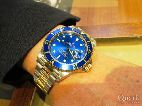 O様 この度は数ある時計店の中からクォーク上野本店をご利用頂き誠にありがとうございます。今回はSUBMARINER Ref.16613青のご購入のお手伝いが出来た事、大変嬉しく思います。今回ご購入のお時計は2009年に生産が終了となったモデルですが、現行モデルに比べ、ケースがシャープになっており軽さも使い易いと人気の青サブです。ベゼル・リューズ・ブレスに18Kイエローゴールドを使用しラグジュアリー感をプラスした人気モデルです。 ご使用頂きしっかりとサポートさせて頂きますので今後、お時計の事で何かございましたらお気軽にご相談下さいませ。宜しくお願いいたします。