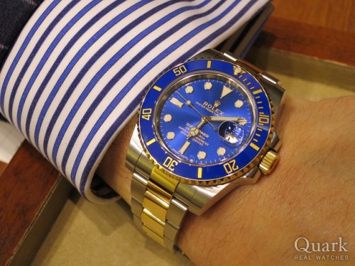 S様 いつもクォーク銀座888店をご利用頂き感謝申し上げます。数あるコンビモデルの中でも圧倒的な存在感を示す青サブを気にって頂き嬉しく思います。良い個体をお探しさせて頂いた甲斐がありました。いつもおしゃれなS様には大変お似合いです。末永くご愛用頂ければ幸いです。また良い情報が入れば、ご連絡させて頂きます。 クォーク銀座888店 店長 日笠山