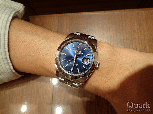 今回ご購入頂きましたデイトジャスト41(Ref.126300)ブルー文字盤は2年前にデイトジャストⅡからモデルチェンジをして新しく登場したモデルです。内部も最新の機械を搭載しており、より実用的に使いやすくなっています。また文字盤もブルーということもあり爽やかな印象で、T様の腕元にすごくお似合いでした。