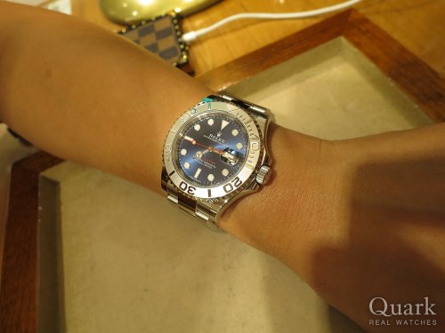 E様、この度は当店をご利用頂きまして誠に有難うございます。E様のご希望に叶うモデルのご提案が出来て大変光栄でございます。今回お選び頂きましたヨットマスター Ref.116622は美しいダイヤルカラーと立体感のあるプラチナダイヤルがとても魅力的なモデルです。メンズモデルではありますが、女性が着用されるのもとても良い雰囲気ですね。サイズ調整や操作方法など何か気になる点がございましたらお気軽に仰ってくださいませ。今後とも末永いお付き合いの程、宜しくお願い致します。