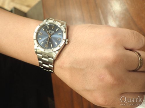 小ぶりなサイズの時計が欲しくて、34㎜のAIR-KINGを選びました。Ref.14010を初めて見た時に「パッ」と一目惚れ!ベゼル、サイズ感に惹かれました。