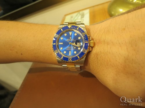 M様、この度はクォーク梅田店をご利用頂きまして誠に有難うございます。念願のモデルを手に入れて頂く事が出来て大変光栄でございます。今回ご購入頂きましたサブマリーナー Ref.116613LBは海を連想させるような美しいブルーダイヤルが魅力的で、特に今の季節にはピッタリのモデルですね。もちろん季節を問わずご使用頂けるモデルですので、是非末永くご愛用くださいませ。またのご来店を心よりお待ちしております。