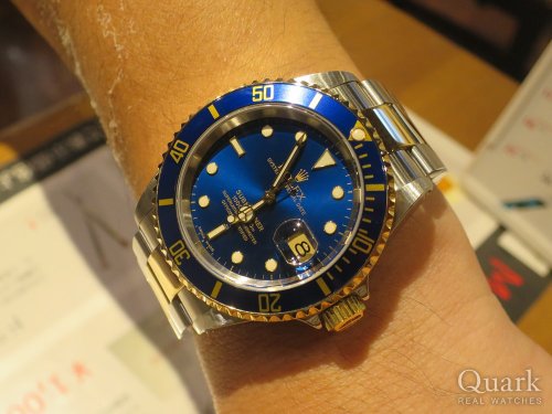 A様、いつもクォーク上野本店をご利用頂き誠にありがとうございます。お選びいただきましたサブマリーナー(Ref.16613)は現行モデルとは異なるスマートなフォルムで、18KYGと爽やかなブルーのコンビネーションが美しく、生産が終了した今現在でも人気の絶えないモデルでございます。デザイン性、機能性、資産性全てにおいて高いレベルの1本ですので末永くご愛用頂ければ幸いです。また今後とも何かございましたら私までお気軽にご相談下さいませ。何卒宜しくお願い申し上げます。