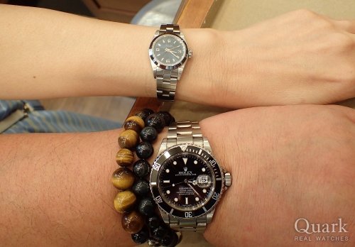 K様 この度はクォーク横浜店をご利用くださいまして、誠にありがとうございます。ご主人の引きの強さにはスタッフ一同びっくりしました。本当にすごかったです。今回お求めいただきましたモデル、OYSTER PERPETUAL(Ref.76080)は現行ではないサイズ感の為、生産終了となた今でも人気のあるモデルでございます。シンプルな文字盤で、また現在のモデルに比べて軽いので、多様なシーンでお使いいただけると思います。サイズ感、カラー共にH様の腕もとにすごくお似合いでした。初めてのロレックスということで、これからのロレックスライフを是非お楽しみください。少しでもご不明な点等ございましたら、しっかりとサポートいたしますので気軽にご連絡ください。またコマの調節やブレス洗浄なども無料ですのでご利用ください。今後とも末永いお付き合いのほど、よろしくお願いいたします。