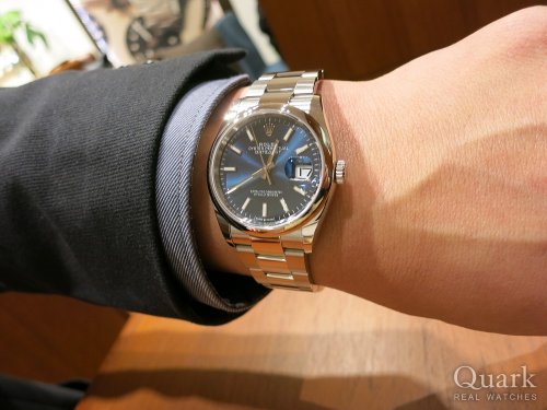 K様、この度はクォーク梅田店をご利用頂き誠に有難うございます。K様にご満足頂ける商品をご案内出来て私も大変嬉しく思います。腕周りがしっかりされていらっしゃるので41ミリケースもとても良くお似合いでしたが、今回お選び頂いた36ミリサイズは小振りな分、上品な雰囲気もあってお仕事も含めて幅広くご使用になられるにはとても良いチョイスだったかと思います。ムーブメントに関しても最新のタイプが搭載されていますので、使い勝手も申し分ないですね。万が一何かお困り等ございましたら気軽にお声掛けくださいませ。今後とも末永いお付き合いの程、宜しくお願い致します。