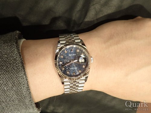 S様 いつもクォーク仙台店をご利用くださいまして誠にありがとうございます。キャリバー3235を搭載したことで、より使いやすくなった「Ref.126234G デイトジャスト36」は、シャープなデザインも人気の一因です。また、新しいジュビリーブレスのバックルは、イージーリンクで調整可能になり、サイズ調整が容易になりました。ダイヤルデザインが美しいブルーのコンピューターダイヤルは、時間を確認するのが楽しくなりそうですね! 今後もしっかり対応いたしますので、どうぞよろしくお願いいたします。