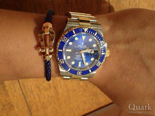 M様 この度はクォーク心斎橋店をご利用頂き誠に有難うございます。丁度良いタイミングでお声掛け頂き、スムーズにご案内出来て大変嬉しく思います。ご購入頂きましたRef.126613LBは、2020年9月から生産されているYGコンビモデルです。青サンレイ仕上げのダイヤルとYGコンビ素材の相性が良く、ゴージャス感も抜群ですよね。何よりこのデザインが最高にお洒落だと思います。今後もお時計の事でご相談などございましたらM様にご満足頂ける様、引き続き努めて参りますので、ご不明な点やご用命の際にはお気軽にお申し付け下さいませ。今後とも末永いお付き合いの程、宜しくお願い致します クォーク心斎橋店 高