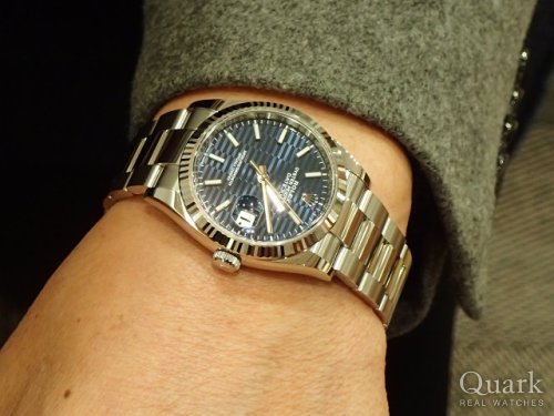 この度は当店にて新作のブルーフルーテッドモチーフのデイトジャストを購入頂き、誠にありがとうございます。M様にとてもお似合いの時計であると感じました。また奥様に合った時と同じ一目惚れをしたとの表現!とても素敵なコメントであると思いました。今後とも、時計を通じた末永いお付き合いの程、宜しくお願い申し上げます。