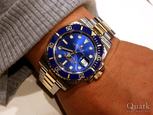 M様、この度はクォーク仙台店をご利用いただきまして誠にありがとうございます。M様がお選びになられた『Ref.116613LB』は、サブマリーナーシリーズのコンビモデルとして初めて耐傷性・耐蝕性に優れたセラミック製ベゼルディスクを採用した、防水能力300mを誇るプロフェッショナルダイバーズウォッチでございます。その他にも、インデックスやリューズガード、ラグ先端の幅が以前より大型化され、実用性・堅牢性が更に向上した大人気モデルです。末永くご愛用いただけましたら幸いでございます。また、ご使用に際して気になる点がございましたら、しっかりサポートさせていただきますので、お気軽にお申し付けくださいませ。尚、私どもではブレス洗浄サービスを行っておりますので、仙台駅方面へお越しの際は、是非お立寄りくださいませ。どうぞ、今後とも変わらぬご愛顧を賜ります様、宜しくお願い申し上げます。 クォーク仙台店 沼澤
