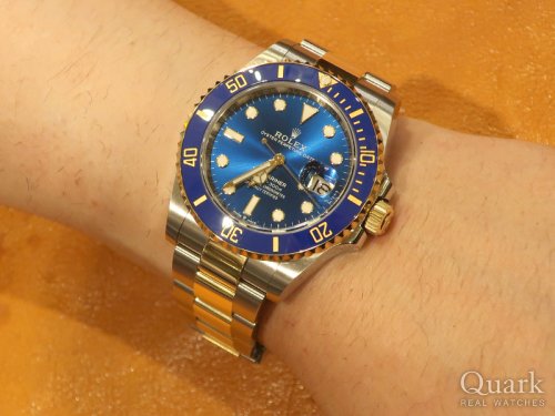 知人の所有している青サブが似合っていて、イエローゴールドも新鮮に映ったため、同じくゴールドコンビのカフェオレ(Ref.126711CHNR)と悩みましたが、こちらに決めました。