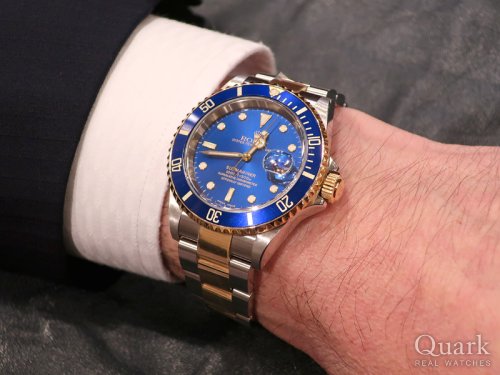 I様、いつもクォーク仙台店をご利用いただきまして誠にありがとうございます。今回お選びいただきました『SUBMARINER Ref.16613』は爽やかなブルーと各所に輝く煌びやかなイエローゴールドの組み合わせが美しい1本です。現行セラミックベゼルの艶やかさもまた魅力的ですが、鮮やかなブルーが感じられるアルミベゼルの発色の美しさも引けを取りません。5桁モデルの細身でクラシカルなシルエットは日本人の腕とバランスが良いと言われており、中空ブレスによる軽やかな着用感もまた味わい深いものかと存じます。ロレックスは休日使いがメインと伺っておりましたが、一日を彩る特別なお時計と確信しております。末永くご愛用いただく中で感じられるエイジングなど、人気モデル“青サブ”を存分にお楽しみいただけますと幸いです。また、私どもではブレス洗浄サービスを行っておりますので、仙台駅方面へお越しの際は、是非遊びにいらしてくださいませ。今後とも変わらぬご愛顧を賜りますよう、よろしくお願い申し上げます。