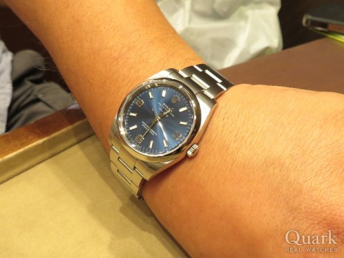 Y様 日頃より、私共クォークをご利用いただき、誠にありがとうございます。思いがけずご購入いただく事となり、驚いてしまいました。まさに、「一目惚れ」ですね。重ねて御礼申し上げます。ロレックスのブルーの文字盤は、見ていて飽きない、とても綺麗な色味でございます。また、34ミリという小ぶりなサイズながら、存在感や高級感のあるデザインで、日付の無いシンプルさは、操作の面でも、デザインの面でも、とても使い勝手が良く、日常使いに最適かと思います。一緒にご購入いただきましたヴィンテージモデルも、こちらのモデルも、これまであまりお選びいただく事がなかったモデルかと思います。Y様のコレクションのバリエーションの幅が広がっていきますね。毎日の時計選びが、悩ましくも、楽しい瞬間になりましたら嬉しく思います。今後も、Y様のお役に立つ事ができますよう努めて参りますので、ご質問やご相談等がございましたら、お気軽にご連絡ください。この度も、誠にありがとうございました。今後とも、どうぞ、よろしくお願いいたします。