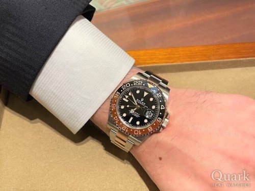 S様 いつもクォーク上野本店をご利用いただき誠にありがとうございます。GMT-II Ref.126711CHNRのご購入おめでとうございます!当初は226659のご購入をご検討との事だったのに気付いたら126711CHNRを買っちゃったには驚きました(笑)海外での人気も高く、今後の資産性が楽しみですね。プライベートやビジネスシーンで活躍する事間違いなしのお時計かと思いますので、ガンガンご使用下さいませ。また、ブレスレットの洗浄及び調整も無料で行っておりますので、お近くにお越しの際は遊びにいらしてくださいませ。お使いいただく上で何かご不明な点等ございましたら、また林までご相談ください。今後とも末永いお付き合いの程よろしくお願いいたします。
