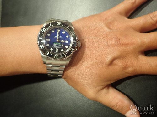 U様、この度はクォーク梅田店をご利用頂きまして誠に有難う御座います。お選び頂きましたディープシーのDブルーは深海を彷彿させるグラデーションが綺麗ですね。ケースサイズや厚みもロレックスの中ではトップクラスとなっておりますので、存在感も抜群のモデルでございます。末永くご愛用頂けるようにしっかりサポートさせて頂きますので、これからもクォーク梅田店を宜しくお願い致します。
