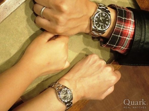 K様 この度はクォーク仙台店をご利用くださいまして誠にありがとうございます。人生の節目にご夫婦でロレックス、素敵でございますね。いただきましたお写真からも幸せオーラがムンムンで、独り身の私には刺激が強すぎました(笑)。新色のダークグレーダイヤルは落ち着いた上品な色合いでございますが、角度や光の当たり方により印象が変わるとのご意見もございます。いろいろな場所でお楽しみくださいませ♪お嬢様のお手が大きくなるころも、そしてその先も・・・いつまでも大切にご愛用いただけましたら幸いでございます。いつの日かお嬢様におねだりされる日がくることを覚悟していただいたほうが良いかもですね(笑)。ご愛用いただく上で気になることやご不明点などございましたら、いつでもご相談くださいませ。もちろん、使い方のご説明も何回でもご案内いたしますのでお任せください!!店頭にてブレス洗浄、サイズ調整を無料で承っておりますので、またいつでも遊びにきてください。それでは今後とも末永いお付き合いのほど宜しくお願い申し上げます。