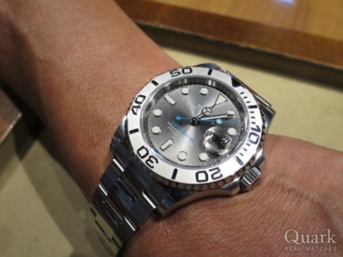 M様 この度はクォ―ク上野本店をご利用頂き本当にありがとうございます。今回はヨットマスター Ref.116622 ダークロジウムのご購入のお手伝いが出来た事、大変嬉しく思います。2016年のバーゼルワールドで追加発表された新ダイヤルで、ロレジウムに使用されていた赤針・赤表記ではなく、水色の針・表記が新鮮さを演出いたします。未だ生産数も少なく入手が困難なモデルです。またサイズ調整などの際はいつでも可能ですのでご来店宜しくお願いいたします。ご使用頂き確りとサポートさせて頂きますので何かございましたらお気軽にご相談下さいませ。