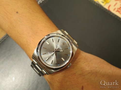 A様 この度はクォーク梅田店にご来店並びにご利用頂きまして、誠に有難うございます。またご遠方よりご来店頂き、併せて感謝申し上げます。この度ご購入頂きましたRef.114300ダークロジウムは数あるオイスターパーペチュアルの中でも統一感があり、シンプルなデザインの中にもカッコ良さが垣間見える非常にお勧めなモデルでございます。A様の雰囲気にとても良くお似合いで御座いました。是非、末永くご愛用頂きますと幸いでございます。全国に12店舗に支店がございますのでどちらの店舗でもメンテナンスの受付やブレスの洗浄・調整等致しておりますのでお気軽にお申し付け下さいませ。 クォーク梅田店 太田原