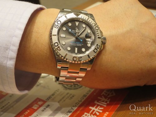 S様 この度はクォーク銀座888店をご利用くださいまして誠にありがとうございます。スポーツモデルのなかでも、高級感漂うラグジュアリーなデザインが人気のヨットマスター。2016年に発表されてから今も尚、人気の高いモデルとなっております。ロジウムカラーと水色に配色されたペットネームが、落ち着いたデザインの中でアクセントとなり、お洒落な1本です。ビジネスシーンでも、カジュアルなシーンでも、着用出来るデザインですので、末永くご愛用頂ければ幸いです。お住まいの沖縄の海と相性抜群ですね!また、ブレスレットの洗浄や調整なども無料で行っておりますので、お近くに来られた際は、お気軽にお立ち寄り下さいませ。今後ともクォーク銀座888店を宜しくお願いいたします。 クォーク銀座888店 魏