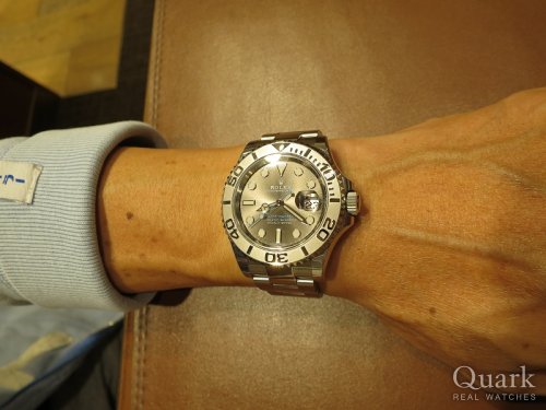 K様、この度はクォーク梅田店をご利用頂きまして誠に有難うございます。ご希望に沿うモデルをご案内出来て大変光栄でございます。ヨットマスターは控えめで落ち着いた高級感が魅力的で、K様のお人柄や雰囲気にもとてもマッチしていてとてもよくお似合いですね。新色のダークロジウムは特に人気があり、なかなか手に入りにくいモデルとしても知られています。是非末永くご愛用くださいませ。また何か気になられる事などございましたらお気軽に仰ってくださいませ。またのご来店を心よりお待ちしております。