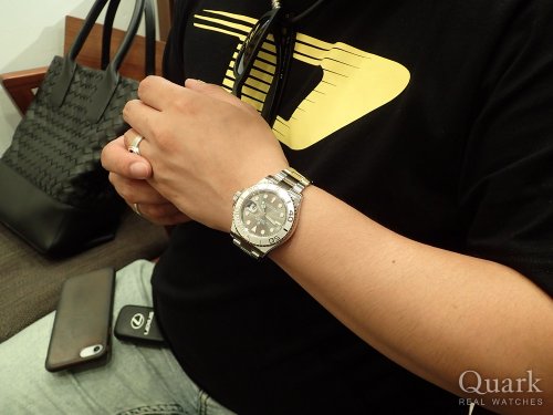 H様、入荷後、即日のご来店、誠に有難うございました。ロレックス好きなご友人が周囲にたくさんいらっしゃる素敵な環境におきましても、十分過ぎる程の存在感があるヨットマスターですので、是非大切になさって下さい。今後もしっかりとH様のロレックスライフをサポートして参りますので、引き続き宜しくお願い申し上げます。 クォーク横浜店 石橋