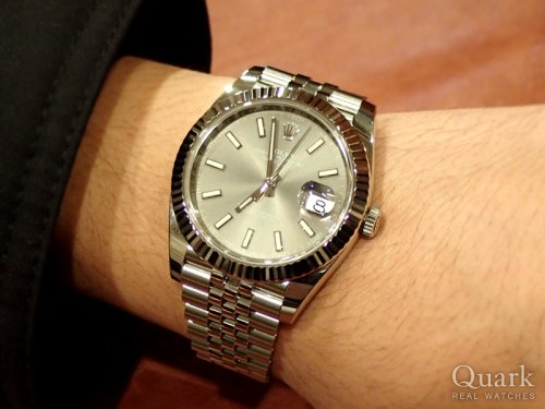 この度は、クォーク仙台店をご利用頂きまして誠にありがとうございます。M様がお選び頂いたお時計はDATEJUST41 Ref.126334 ダークロジウムでございます。ダークロジウムとバーインデックスを合わせたダイヤルが渋い雰囲気を演出しており、ホワイトゴールドを使用した高級感あるフルーテッドベゼルとのバランスも、魅力的なモデルでございます。また、お褒めのお言葉を預かり、誠にありがとうございます。今回はお時計のご案内に至るまでお時間を頂戴致しましたが、M様のご希望に沿った個体がご用意できまして、私も安心致しました。末永くご愛用頂けたら幸いです。尚、気になる点やご要望などございましたら、お気軽にお申し付けくださいませ。今後とも変わらぬご愛顧を賜ります様、宜しくお願い申し上げます。 クォーク仙台店 沼澤