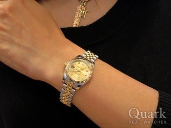 K様 この度はクォーク横浜店をご利用くださいまして誠にありがとうございます。ご購入頂きましたお時計は、文字盤・ブレスのゴールドカラーとダイヤが腕元で豪華絢爛な輝きを放ち、上品で大人な雰囲気のK様にはとてもお似合いでございます。また、ご着用なされているゴールドアクセサリーとも大変好相性でございましたので、コーディネートもなされやすいかと思います。50歳の記念ということでございましたので、末永くご愛用頂けましたら幸いでございます。ブレス洗浄も承っておりますので、近くにお越しの際は是非また旦那様とご一緒にご来店くださいませ。アフターサポートに関しましてもしっかりと対応させて頂きますので、今後とも宜しくお願い致します。クォーク横浜店 濵松