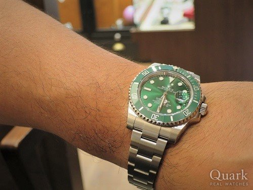 いつもクォークをご愛顧賜り誠にありがとうございます。これまでいくつかのロレックスをご愛用いただいたH様。エアキング、エクスプローラーII、デイトナ、そしてこのグリーンサブと、これまでお持ちのロレックスは全て雰囲気やスペックの異なるものをお選びいただいてきたH様の感想を聞くのが楽しみです。SSデイトナの下取りはとても悩まれたとは思いますが、購入時よりも高値がついた絶妙なタイミングで買い替えいただけましたので、時期的にも良かったと思います。デイトナも似合っておられましたが、グリーンサブの少しゴツっとしたデザインも、H様の腕元にピッタリでした。鮮やかなグリーンサブを着ける休日が充実したものになりますよう、しっかりサポートさせていただきますので、今後ともお付き合いのほど、よろしくお願いいたします。 クォーク横浜店 長本