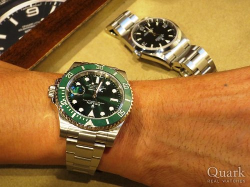 Y様 この度はご遠方から上野本店へご来店、並びにご利用頂きまして誠に有難うございます。 長年気になっていらっしゃったSUBMARINER グリーンをご案内出来た事を私も心より嬉しく存じております。 以前からお持ちのEXPLORERと今回お色の入ったSUBMARINER、気分や場面に合わせて是非お使い頂けますと幸いでございます。 インパクトのあるグリーンカラーも非常に良くお似合いでした! お使いいただく上で何かご不明な点等ございましたら、またいつでも青木までご相談くださいませ。 今後とも末永いお付き合いの程、どうぞ宜しくお願い致します。 クォーク上野本店 青木