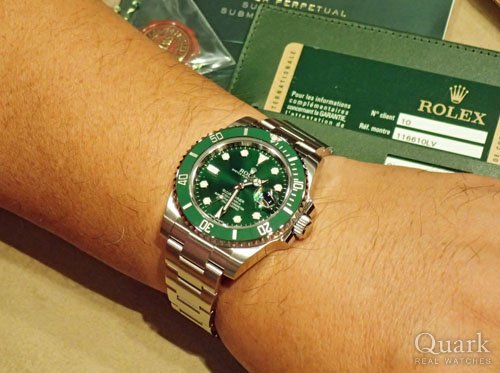 又、買っちゃいました!!(笑)9月にディスコンの噂もあるグリーンサブの良質な個体を案内頂きました。クォークさんは物の良いものしか出していない。というのが今回で3本目の私の印象です。その中からさらに良いものを購入出来て幸せです。そしてなによりクォークさんは店員さんが素晴らしいです。安心していろいろ相談出来ます。時には、わがままな相談にも嫌な顔せず応えてくれます。もう一生クォークさんについていきます。(笑)