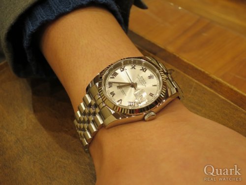 K様 この度は数ある時計店の中からクォークでご購入頂き、誠に有難うございます。気さくにお話し下さいましたK様。同じ販売職をされているということもあり、楽しくお話しさせて頂きました。ご購入頂いたデイトジャストのグレーローマはお仕事で活躍してくれることはもちろん、K様の私服にも良くお似合いでしたので、是非ご愛用頂き楽しい時間をお過ごし下さい。また、少しお使い頂いてサイズの調整等が必要な場合はお気軽にお申し付け下さい。今後とも末永いお付き合いの程、宜しくお願い致します。