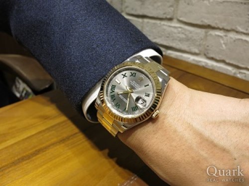 K様 この度はクォーク心斎橋店をご利用頂き、誠に有難うございました。K様の仰る通り、他のモデルにはない色使いが特徴的な文字盤はRef.116333が発表された時から注目を集めておりました。シルバー(グレー)とゴールドの2色をベースに、落ち着きのある深いグリーンがイエローゴールドを嫌味なく引き立ててくれる、絶妙な組み合わせですね。オン・オフ問わず、K様の腕元で相棒として活躍してくれるはずです。今後のサポートは私共が承りますので、何でもご相談ください。有難うございました。 クォーク心斎橋店 鈴木