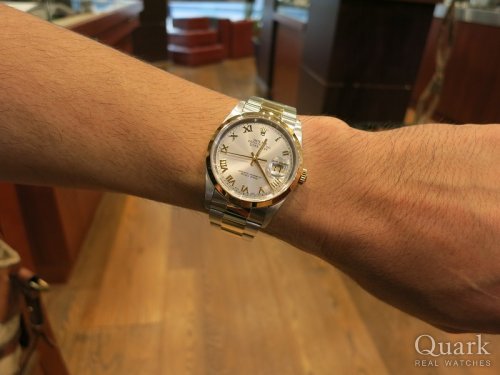 S様 いつも大変お世話になります。この度はデイトジャストSS×YGコンビ(Ref.16203)グレーローマダイヤルをお買い求め頂きまして誠に有難うございました。さすが、時計を熟知されているS様ならではの視点とこだわりのある1本ですね。コンビモデルでは比較的珍しいポリッシュベゼルにオイスターブレス仕様のチョイスも大変興味深い所です。ダイヤルは、シルバーダイヤルと比べても一層高級感があるグレーダイヤルで、ローマインデックスも映えるカラーリングですので、コンビモデルとの相性も大変良いと思います。是非、末永くご愛用頂けます様、願っております。またお使い頂く中でご不明な点やご用命の際にはお気軽にお申し付け下さいませ。今後とも宜しくお願い致します。