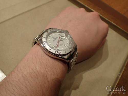 H様、この度はクォーク心斎橋店にまで足を運んでいただき、誠にありがとうございました。今回ご購入いただきました「YACHT-MASTER Ref.16622」はスポーツモデルの中でも高級感溢れるデザインです。一目で気に入っていただき、出来る限り年式の新しい良個体をお探しさせていただき、H様にご満足していただきましたこと、大変喜ばしく感じております。これからのH様の充実したロレックスライフを願っております。ブレスレットの洗浄、調整は無料で対応しておりますので、お気軽にご利用くださいませ。なお、全国どこの店舗でもしっかりサポートさせて頂きますので、今後ともクォーク心斎橋店をよろしくお願いいたします。