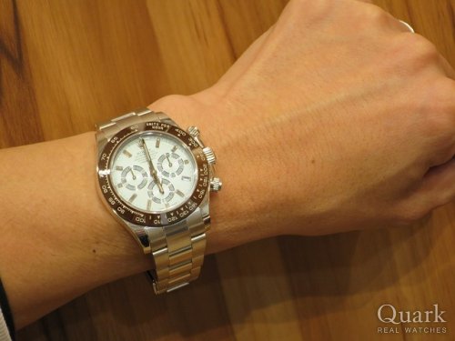 W様 いつも弊社をご利用頂きまして誠にありがとうございます。長期に渡りお待ち頂きましたW様に改めまして感謝申し上げます。ロレックスモデル最高峰のDAYTONAに、素材の最高峰プラチナ。更には11Pバケットダイヤが高級感を与えてくれます。私もここまで豪華な時計は扱いが多くございませんので、貴重な経験をさせて頂き嬉しく思います。また、普段お忙しいW様にとって、お正月の海外旅行も楽しんで頂ければと思います。ステンのデイトナの件の際は、また私、渡邉までお申し付け下さいませ。今後共、末永いお付き合いの程、宜しくお願い致します。 クォーク新宿店 渡邉