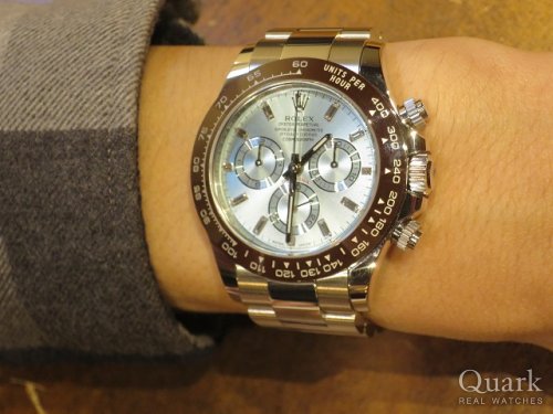 O様 この度もまた数ある時計店からクォーク上野本店をご利用いただき誠にありがとうございます。ついにO様の夢が叶いましたね!おめでとうございます!7月に上野本店にご来店された際、いつかは116506Aが欲しいと言われていた事、今でもよく覚えております。今回、O様にご紹介させていただきましたDAYTONA Ref.116506Aはロレックスの中でも最上級のモデルとなり、プラチナ独特な色合いが見る人を引き込んでしまう程の魅力があります。Ref.116506Aは中々入荷する事が少なく、私も自信を持ってご紹介出来た事、非常に嬉しく思います。ブレスレットの洗浄及び調整も無料で行っておりますので、お近くにお越しの際は遊びにいらしてください。是非永くご愛用いただければ幸いです。お使いいただく上で何かご不明な点等ございましたら、また林までご相談ください。今後とも末永いお付き合いの程よろしくお願いいたします。