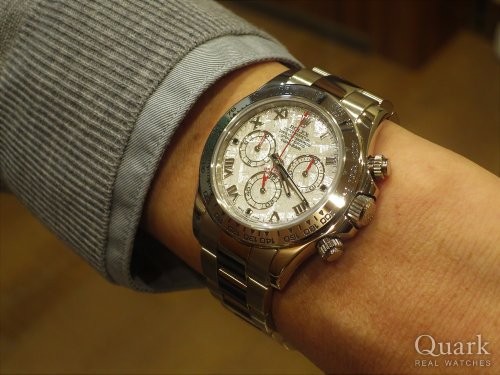 いつもクォークをご愛顧賜り心より感謝申し上げます。最近、流通量が非常に少なく、価格も高騰してきている116509メテオライトですが、今回タイミングよく入荷、ご案内ができ、希少なモデルとは本当にご縁が大切だと感じました。個体の条件も良く、最近見かけた個体の中でも良いコンディションを維持している1本だと考えております。文字盤の模様も素敵でメテオライトらしい雰囲気を存分に堪能していただける個体でございますので、末永くご愛用頂けますと嬉しく思います。I様、いつもありがとうございます。引き続きご期待に添えます様、頑張りますので今後ともどうぞ宜しくお願い申し上げます。