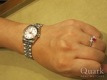 K様 この度はクォーク仙台店をご利用くださいまして誠にありがとうございます。旦那様からのプレゼントとしてご購入いただいたお時計でございますが、ホワイトゴールドとダイヤの輝き、そしてピンクの文字盤が、K様の優しく柔和な雰囲気に大変お似合いでございました。旦那様もロレックスをご愛用いただいておりますので、これからはご夫婦で、ロレックスライフを楽しんでいただけましたら幸いでございます。ブレス洗浄等無料にて行なわせていただきますので、近くにお立寄りの際は、お気軽にお申し付けください。今後とも末長いお付き合いの程宜しくお願い致します。クォーク仙台店 濵松