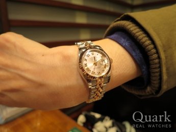 Ref.179174ピンクローマを見ていたけれど、昔コンビモデルを持っていて、やっぱり着けた時にコンビの方が良いかなと思った。後は、縁がありタイミングも良く購入になりました。今回は価値を知ったので大事に使います。