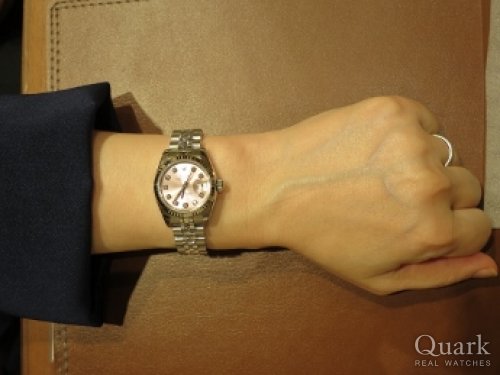 T様 この度はクォーク梅田店ご来店並びにご利用頂き誠に有難う御座います。明るいピンクの色目が女性から抜群の支持を集めています!ギザギザのフルーテッドベゼルがキラキラと光り輝き、10ポイントダイヤが高級感をグッと引き上げてくれる大人気モデルです☆他店でも検討されていたところ、お戻り頂き有難う御座いました。今後とも宜しくお願い致します。 クォーク梅田店 平田