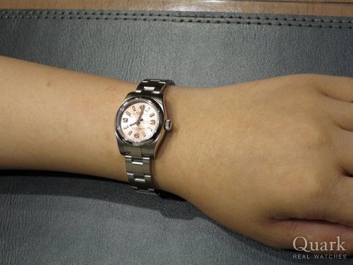 T様 この度はクォーク梅田店をご利用頂き、誠にありがとうございます。ご購入頂きましたオイスターパーペチュアルは、カレンダー表示のないスッキリとしたデザインで、ダイヤルのピンクが良く引き立つと思います。女性らしいピンクダイヤルは、T様の雰囲気にとてもよくお似合いでした。ファッションのアクセントとして末永くご愛用くださいませ。アフターサービスも行っておりますので、いつでもお気軽にご来店頂ければ幸いです。今後ともクォーク梅田店を宜しくお願い致します。