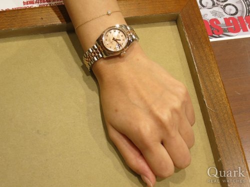 新型の大型ケースよりも、私の腕にフィットする旧型の26ミリケースであり、しかも珍しいピンクのゴールドクリスタル文字盤であることに惹かれて即決致しました。