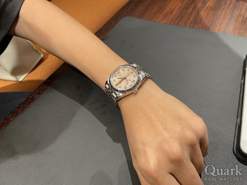 J様 この度は数ある時計店からクォーク名古屋店をご利用いただき誠にありがとうございます。ご購入いただきました『Ref.126234G』ピンクコンピューターダイヤルはデイトジャストの2021年式の個体です。こちらのモデルは2019年、ムーブメントに70時間のパワーリザーブ「Cal.3235」を搭載し前機のRef.116234Gから、さらなる進化を遂げてリニューアル致しました。J様にもお似合のお時計はJ様にとって自慢の一本となると存じます。またブレス洗浄も無料で行っておりますので、お近くにお越しの際は遊びにご来店ください。今後、お使いいただく上で何かご不明な点等ございましたら、また久保までご連絡お願い致します。今後とも末永いお付き合いの程よろしくお願いいたします。