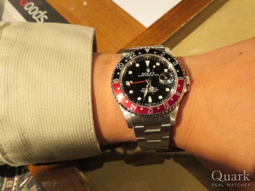W様、この度はクォーク上野本店をご利用頂きまして、誠にありがとうございます。お選び頂きましたGMT-MASTER II Ref.16710 赤黒はトリチウム夜光とシングルバックルの仕様で、今とても注目されております。W様の生まれ年と同じ個体がご案内出来て私も嬉しく思います。W様に大変お似合いでした。末永くご使用していただければと思います。その他、ご使用いただく上で何かご不明な点がございましたらお気軽にご連絡ください。また、ブレスレットの洗浄及び調整も無料で行っておりますので、お近くに来られた際には是非遊びにいらして下さい。末長いお付き合いの程、どうぞ宜しくお願い致します。