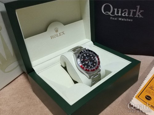 S様 いつもクォーク仙台店をご利用くださいまして誠にありがとうございます。この度S様にお求め頂きましたモデル、『GMTマスターII Ref.16710』の赤黒ベゼルはこの型番を最後に、赤黒のカラーが現在はラインナップから姿を消しているものの、初代GMTマスターIIから続いた人気の高いベゼルカラーでございます。また、S様の御眼鏡に適うコンディションである事や、今後の資産性を期待できるレアディテールのスティックダイヤルである事も、本個体を気に入っていただけた大きな要因と感じております。お問い合わせを頂いた際、タイミング良くご案内できましたので、本当に運命のような巡り合わせでございました。末永く楽しんで頂けますと幸いです。今後とも、どうぞ宜しくお願い申し上げます。