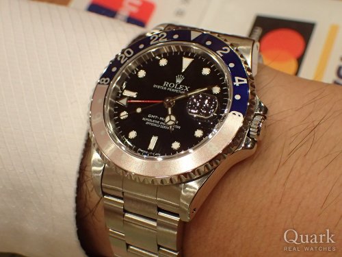 N様 いつもクォークをご愛顧いただき心より感謝申し上げます。今回ご購入いただいたRef.16700はベゼルの色合いが素晴らしいエイジングを魅せてくれ、GMT好きとしてはいつまでも眺めていられる個体です。周囲の方もロレックスを所有されていらっしゃる方が多いとの事ですので、この玄人好みのGMTであれば、存分に語って頂ける個体ではないかと思います。私もGMTが好きなので、GMT仲間が増えることはとても嬉しく、ベゼルの色具合やトリチウムの変化なども含め、今後も定期的に拝見させて頂けると嬉しいです。ブレスクリーニングなどメンテナンスも含め新宿にお立ち寄りの際には、またぜひ色々とお話お伺いさせて下さい。今後ともどうぞ宜しくお願い申し上げます。