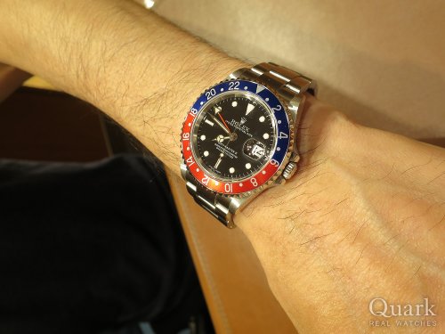 I様、いつもクォーク梅田店をご利用頂きまして誠に有難うございます。前回お話しさせて頂いていた時以来、気になられていたGMTマスターII Ref.16710赤青ベゼルを手に入れて頂く事が出来て私も嬉しく思います。以前ご使用されていたという事もあり、懐かしいお気持ちも含めて末永くご愛用頂ければ幸いでございます。また何か気になられたモデル等ございましたらお気軽に仰ってくださいませ。今後とも宜しくお願い致します。