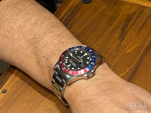 H様 いつもクォークをご愛顧いただき厚く御礼申し上げます。いつも物腰やわらかくお話しくださるH様。この度も誠に有難うございました。トリチウム夜光が色濃くエイジングにより焼けた雰囲気のいいGMT-MASTER(Ref.1675)、ベゼルの色合いも非常に素敵でH様によくお似合いでいらっしゃいました。念願のRef.1675、末永くご愛用いただき、楽しいロレックスライフをお過ごしくださいませ。また、お話しできるのを楽しみにお待ちしております。今後ともよろしくお願いいたします。