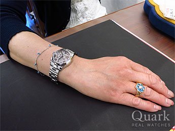 A様 いつも当店を御利用頂き、誠にありがとうございます。シルバーフラワー文字盤は華やかさと高級感を併せ持つ文字盤になりますので、腕元のアクセントとしてピッタリの1本になると思います。これからもしっかりサポートさせて頂きますので、何か気になる事が御座いましたら、御遠慮なく御相談下さいませ。また、お時間が御座いましたら、ブレスクリーニングも兼ねて遊びに来て下さい。 クォーク名古屋店 成田